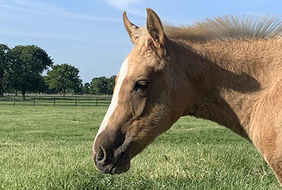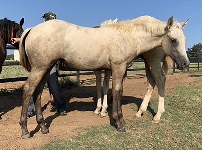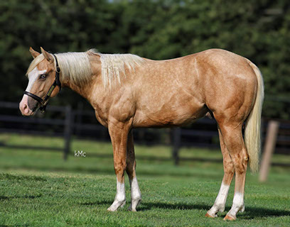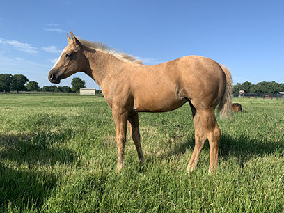 This golden palomino filly is very good minded and athletic. She is quick on her feet, intelligent, and has a round top line. We are keeping her half brother to show and promote. He is making a very nice 2-year-old and coming along nicely. Is very quick footed with a lot of turn, good leaded, and has the drop for a big stop.